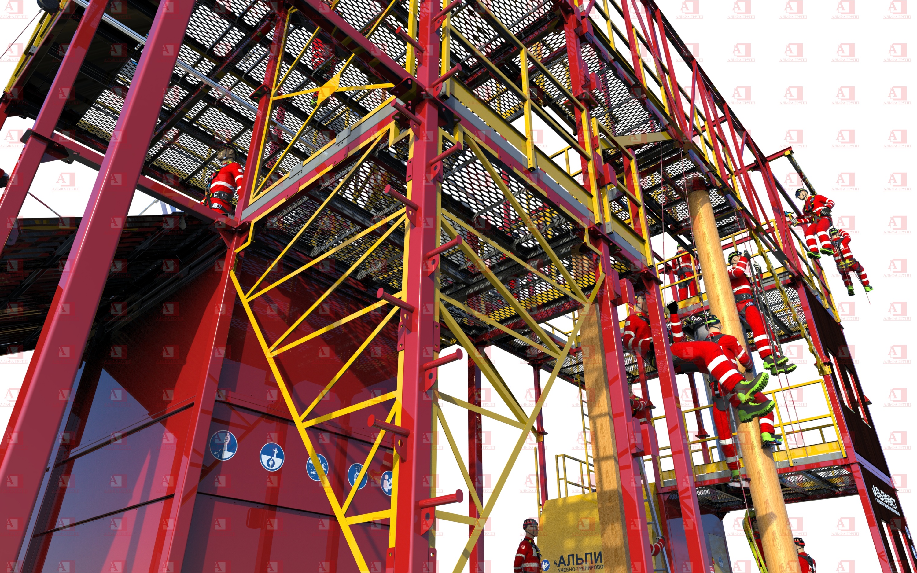 •  Подъём по металлоконструкции с применением вертикальной гибкой анкерной линии;